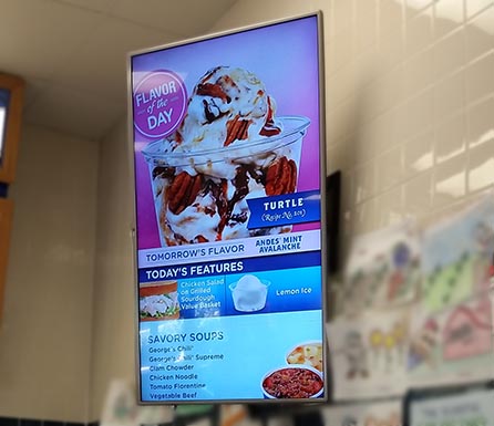 Digital Displays are easily loaded with new images or moving video that catches the eye of everyone in the area. Optional audio can be added to inform people of specials, menu options and much more.